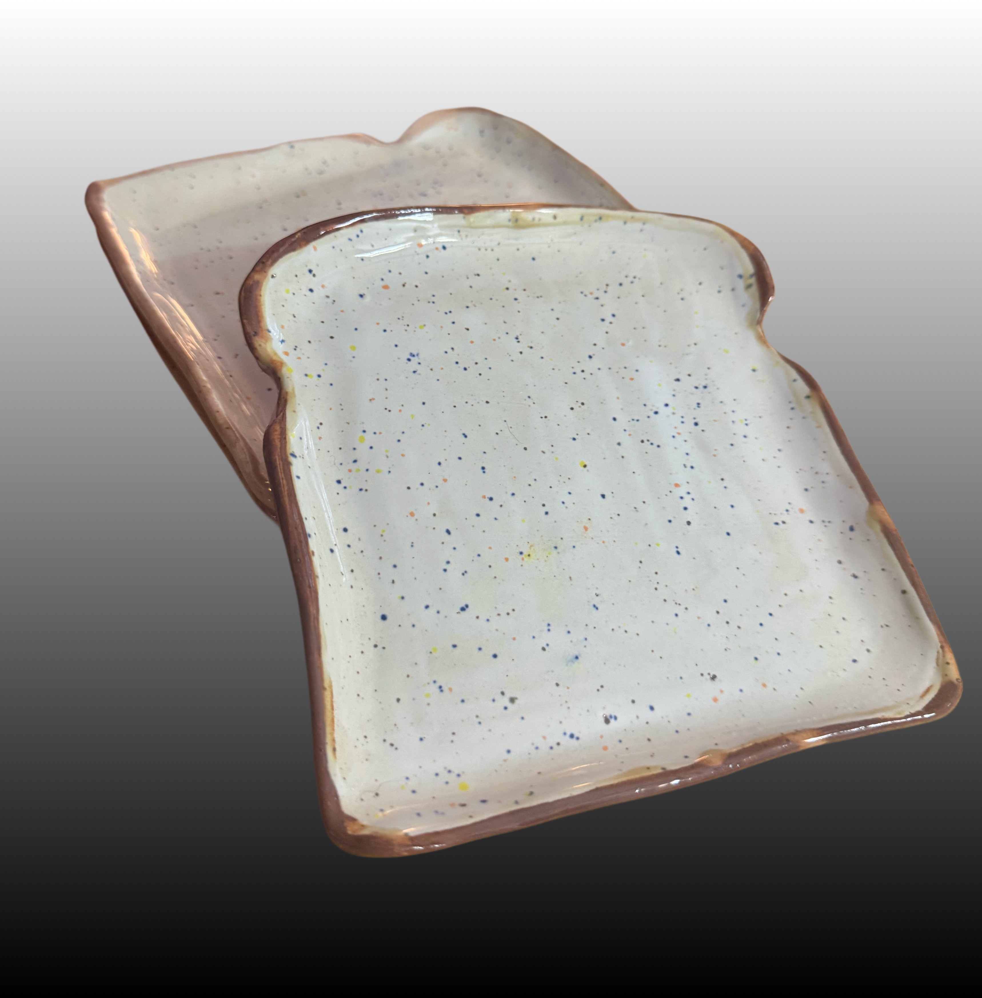 Start your day with a smile! This whimsical bread slice plate is hand-built and glazed to look just like a slice of bread—perfect for breakfast, snacks, or serving up a little joy.