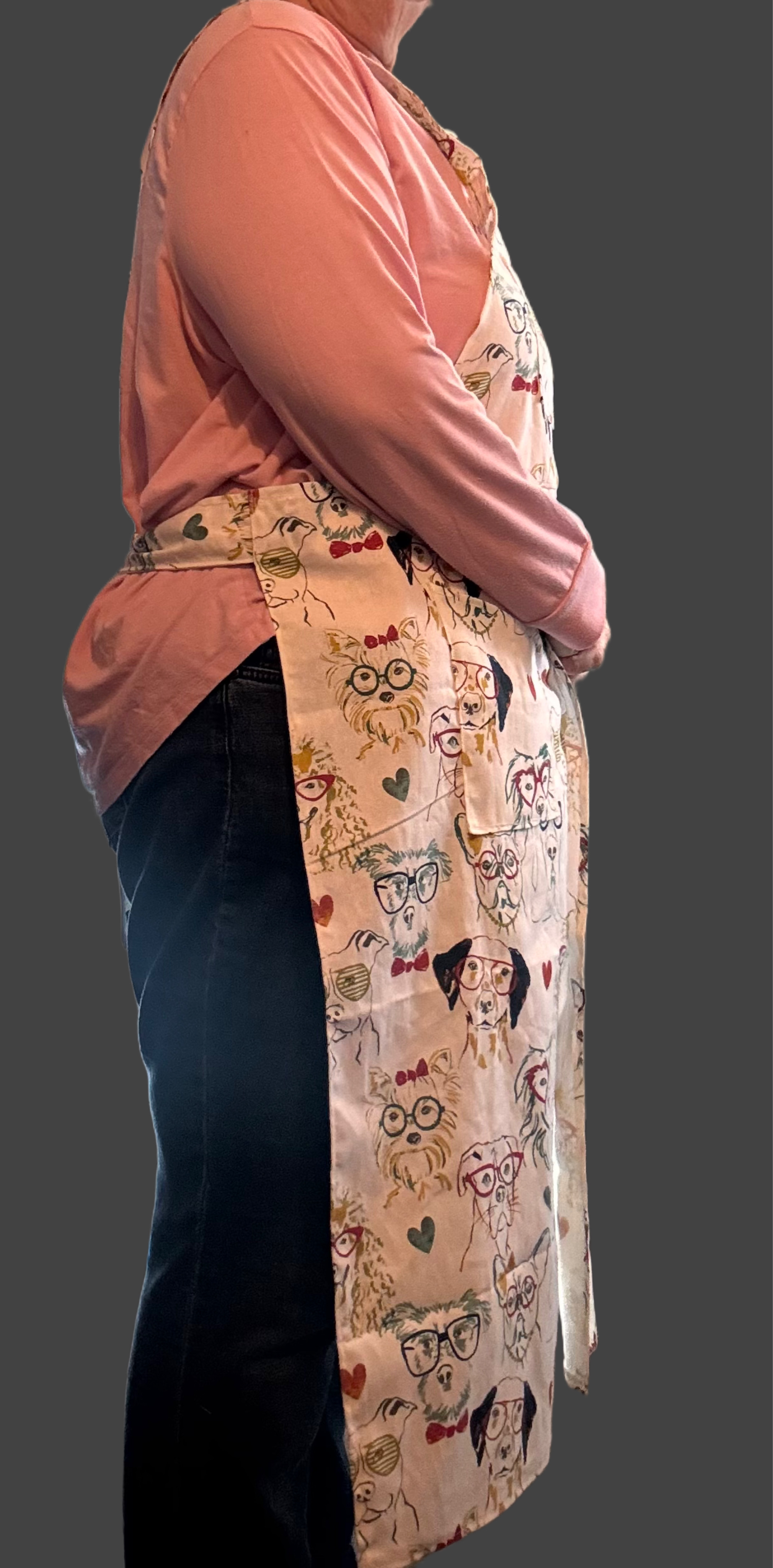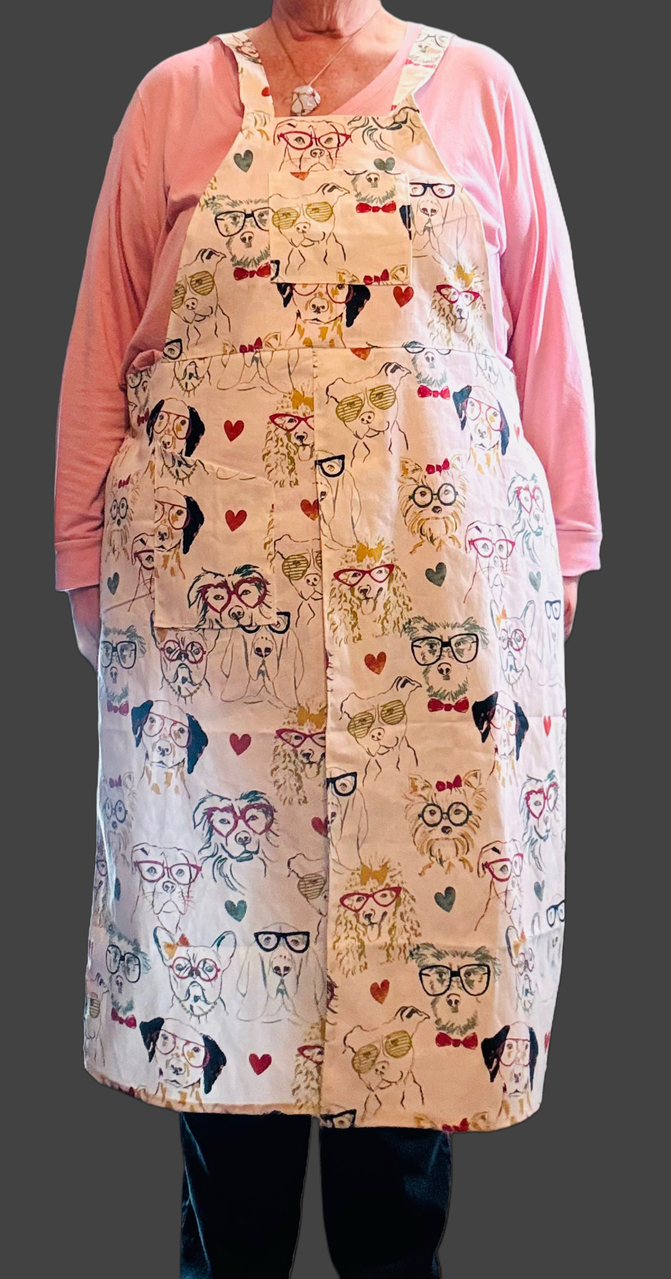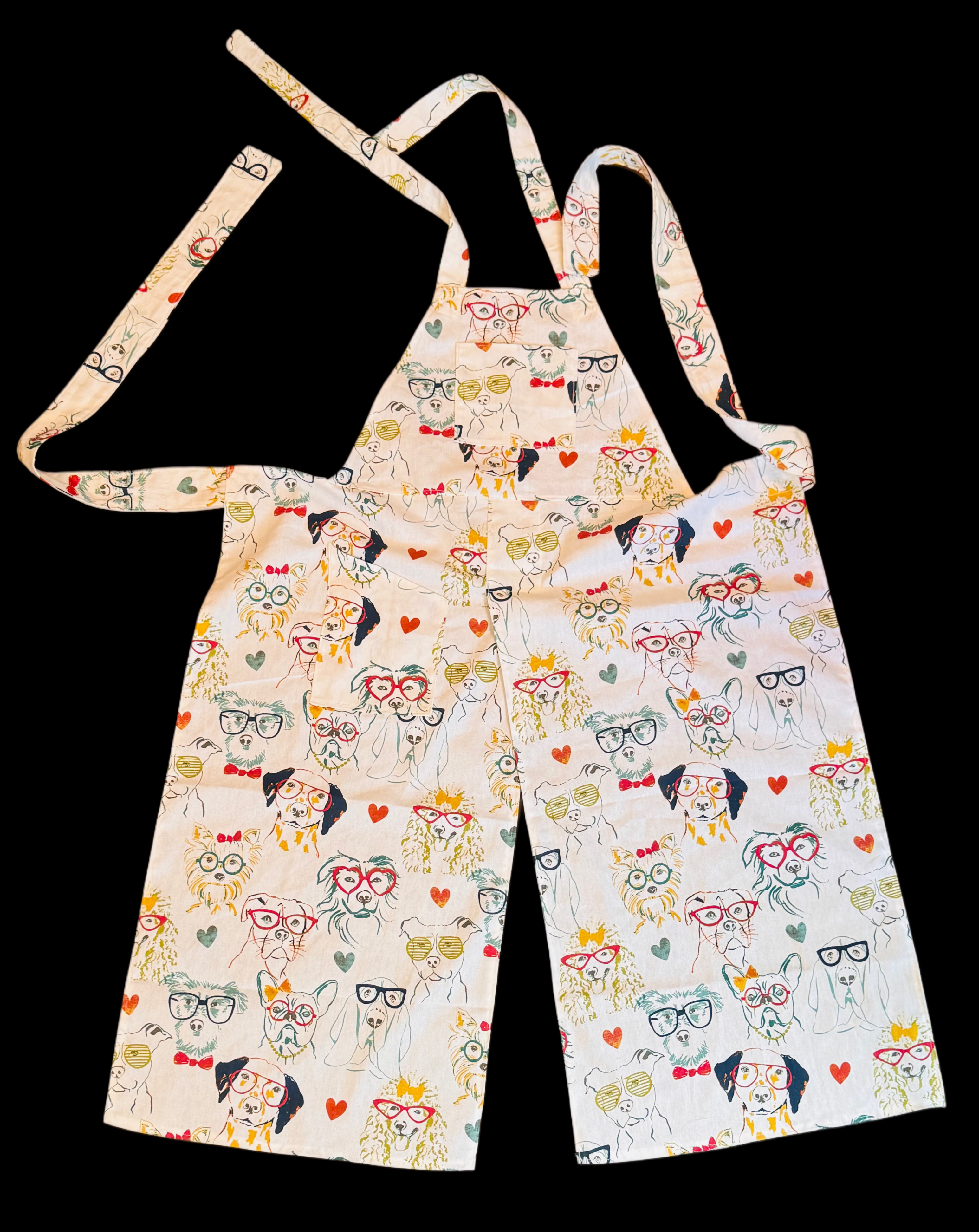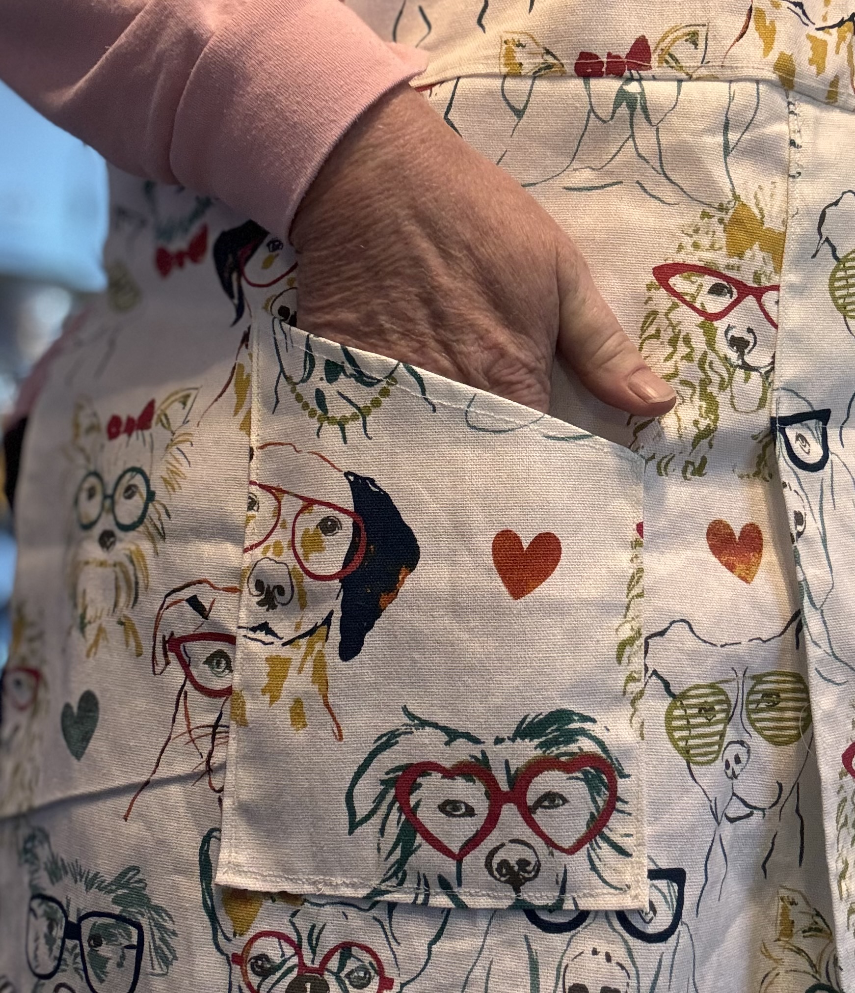 Each “Smarty Paws” apron is lovingly handmade right here at ArtShack! I start by selecting a high-quality 100% duck cotton fabric that’s both durable and easy to wash—because we potters know things can get muddy. The cheerful pattern of dogs in glasses instantly makes me smile, and I hope it does the same for you!